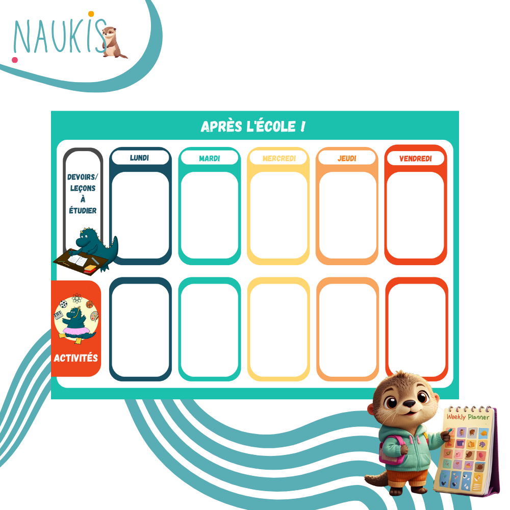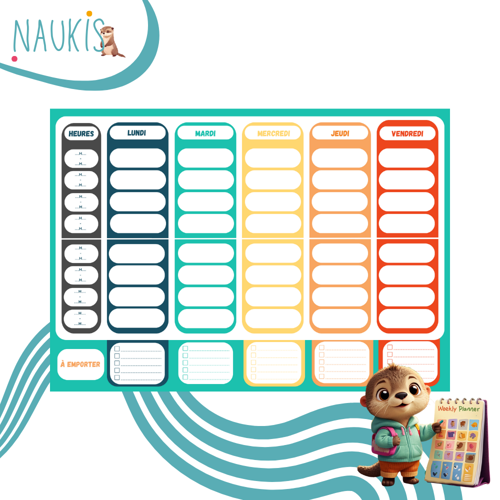 Notez l’horaire des cours, les devoirs et leçons à étudier, ainsi que les activités extra-scolaires de la semaine pour vous organiser avec votre enfant en toute légèreté.